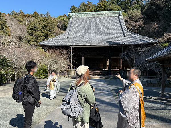 祖師堂お参りのあとは境内にて質問に答えていただくなど、貴重な機会を頂戴しました。